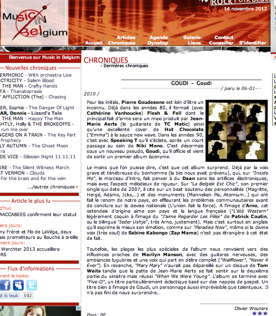 MUSIC IN BELGIUM 06 01 2010 Published November 14, 2012 at 557 × 639 in PRESS ← Previous Goudi album review January 2010